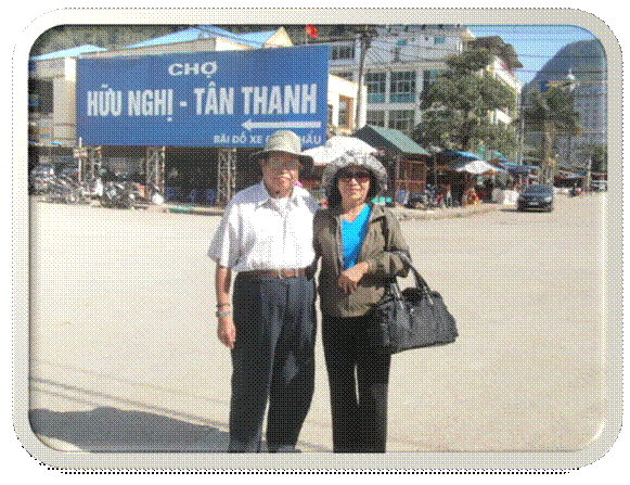 作者夫妇摄于三清市集入口处,远处为友谊关口岸。