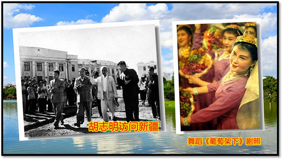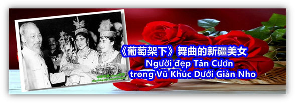 难忘的是在当年的河内露天的“人民戏院”,被坐满和站满数千河内观众围得水泄不透,胡志明主席和越南党政领导人都出席了。当新疆歌舞团的压轴舞蹈《葡萄架下》的美女出场时,天公不造美,倾盆大雨突然从天而降,全场观众全部被从天直下水柱,人人淋若落汤鸡,但大家都不愿意离开。人们目不转睛地望向舞台,婀娜多姿的新疆姑娘,跳着婆娑的舞步向着人们走来,也向着你我走来,那靓丽俊俏的倩影,那满眼闪动的绿意,那风情万种的舞姿,让人心儿都醉了,魂儿也飞了……当时我也在演出现场,那震撼的情景至今仍让我难忘。当晚演出结束后,胡志明主席等越南党政领导人陆续走上了舞台,接见了何梦道等西域美女们,何梦道更紧紧握着胡志明温暖的手,久久不放。