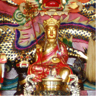 十殿都是王爵,大家平起平坐,難道沒有一個頭頭?西元728年,朝鮮半島南部新羅國人金喬覺經75年苦修後,99歲時圓寂,證菩薩果。他受佛祖任命為幽冥教主,掌管十殿。他立下宏願:“地獄不空,不成正果;眾生渡盡,方證菩提”。 幽冥教主只管宣化、超度,不干預具體事務,以保證司法獨立。億萬眾生,罪惡累累,什麼時候能渡盡?因而至今教主還蹕駐酆都城森羅殿(左圖)。幽冥教主寶誕是七月三十。