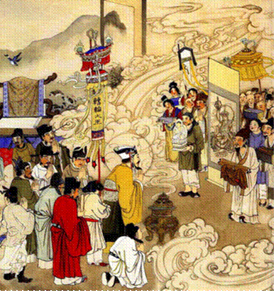 七月十五也是道教的中元節。道教把天、地、水看做構成宇宙三要素,玉皇特別委任天、地、水“三官”作為自己在凡間的代表,每年要向天庭作工作報告。三官寶誕分別是