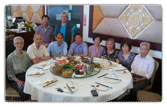 老同学,聚舊情。劉兆興,籃球勁(左2),談起往事話不停,趣味惹得大家笑盈盈。