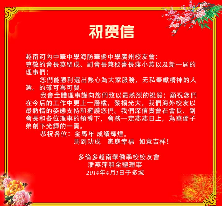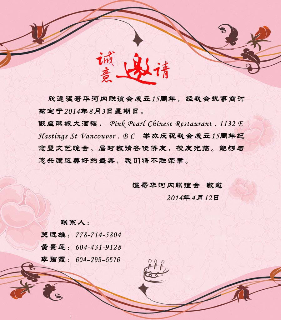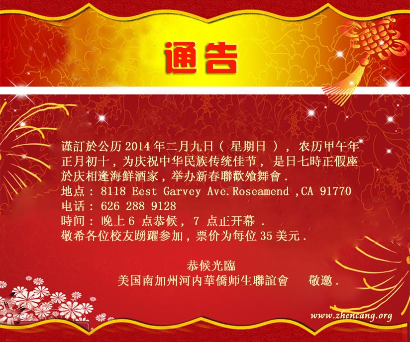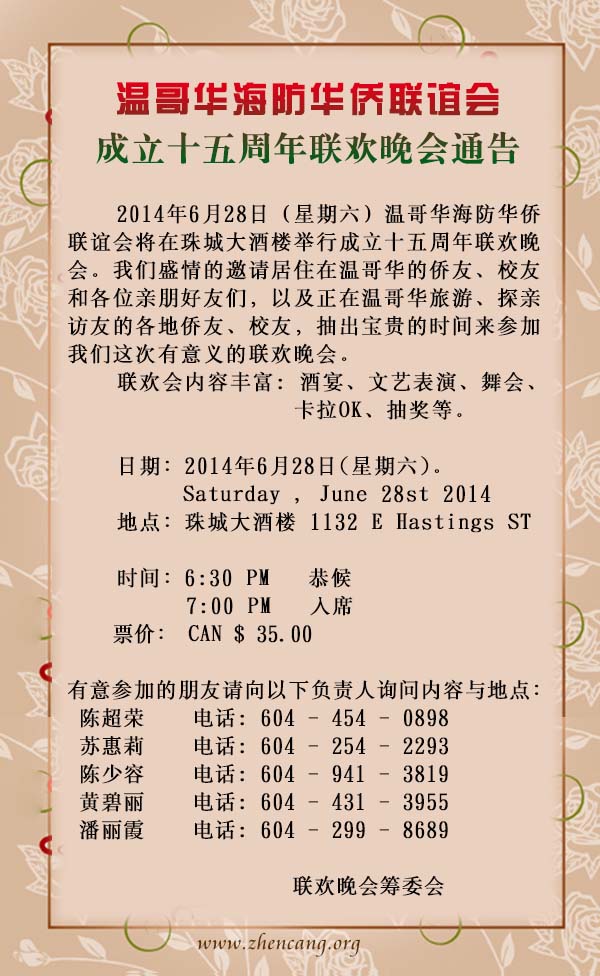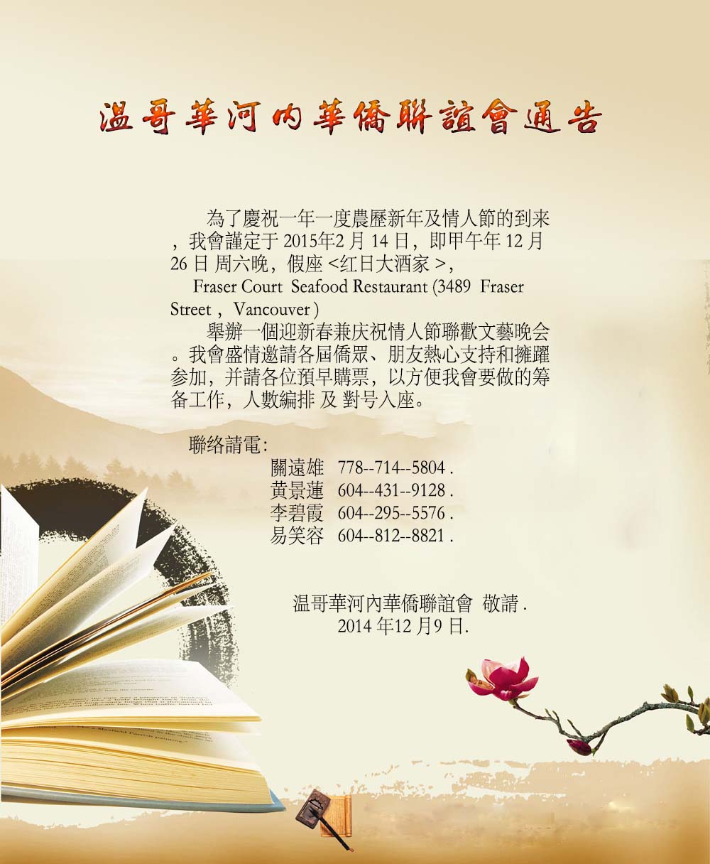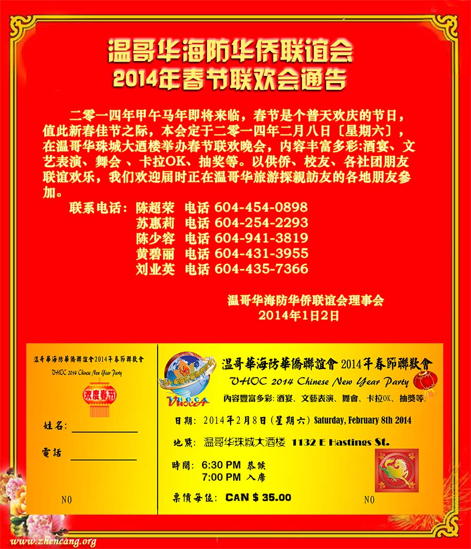 温哥华海防华侨联谊会2014年春节联欢会通告