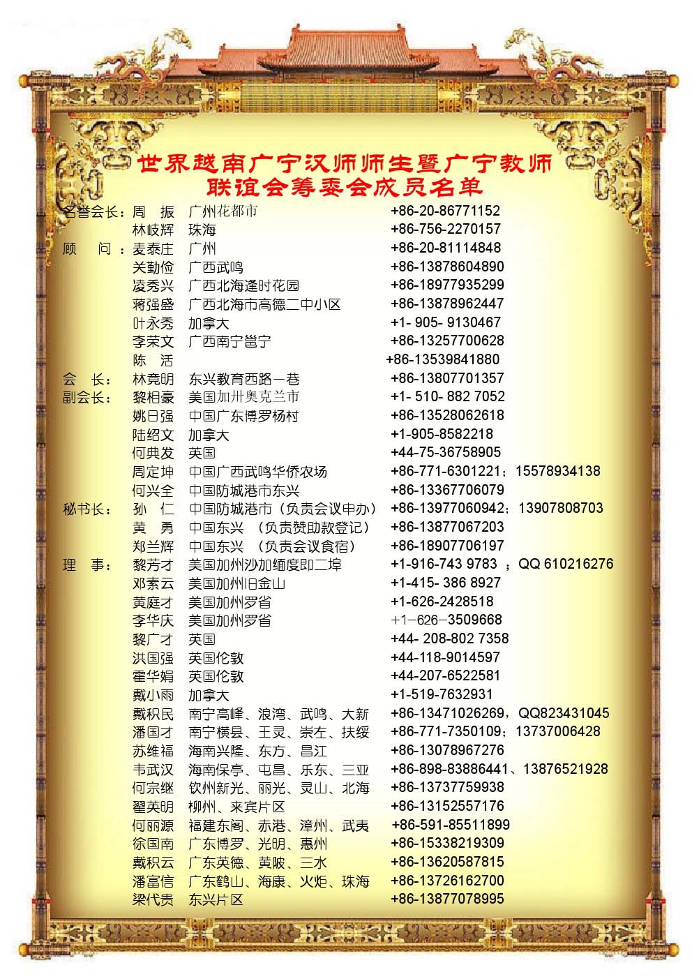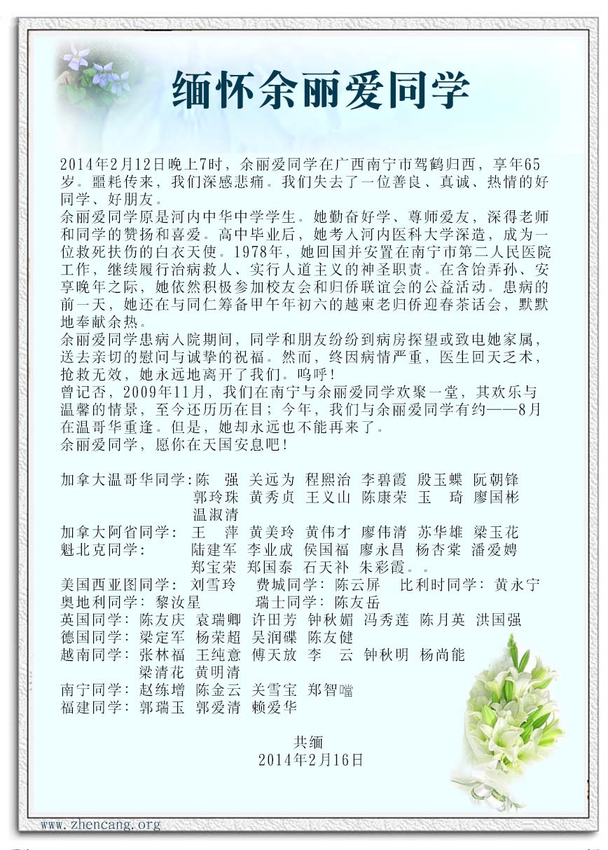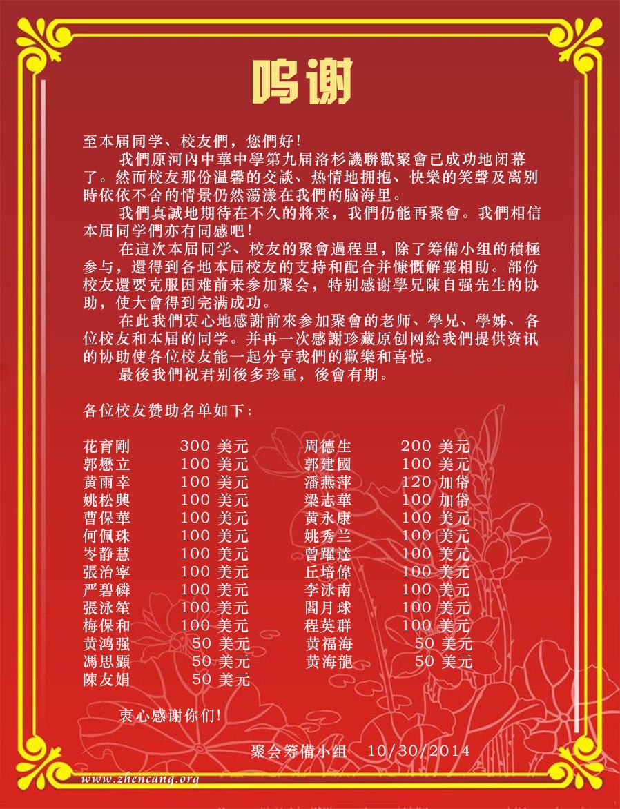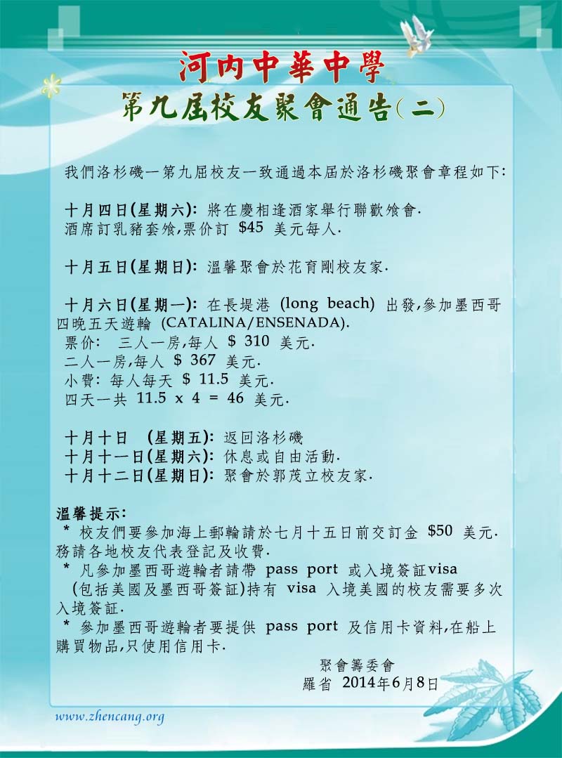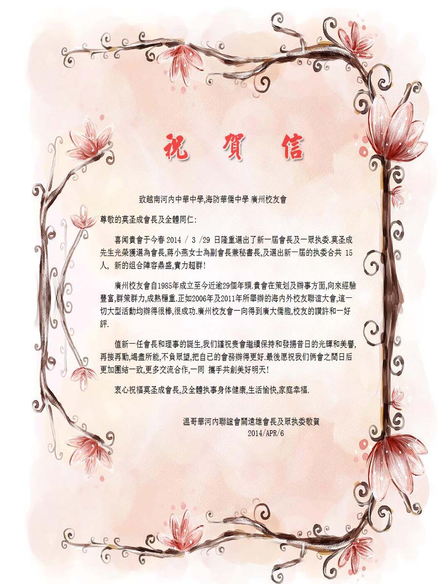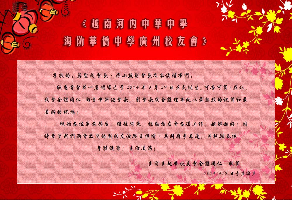 温哥華河內華僑聯誼會通告