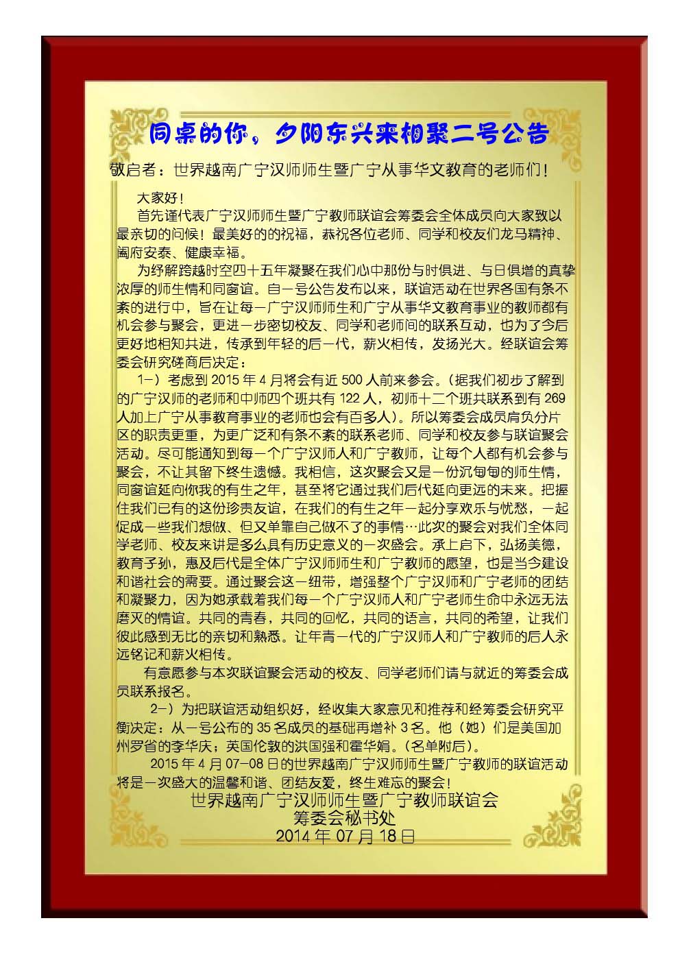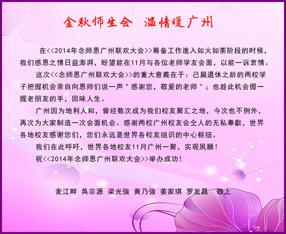 广宁汉师师生暨广宁教师联谊会筹委会第三号公告