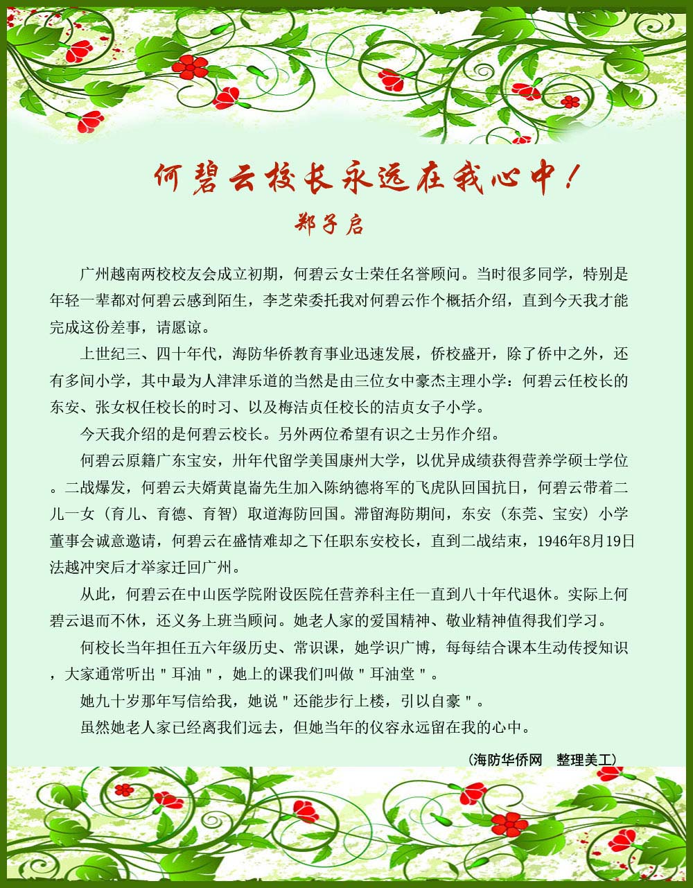 何碧方校長永远在我心中