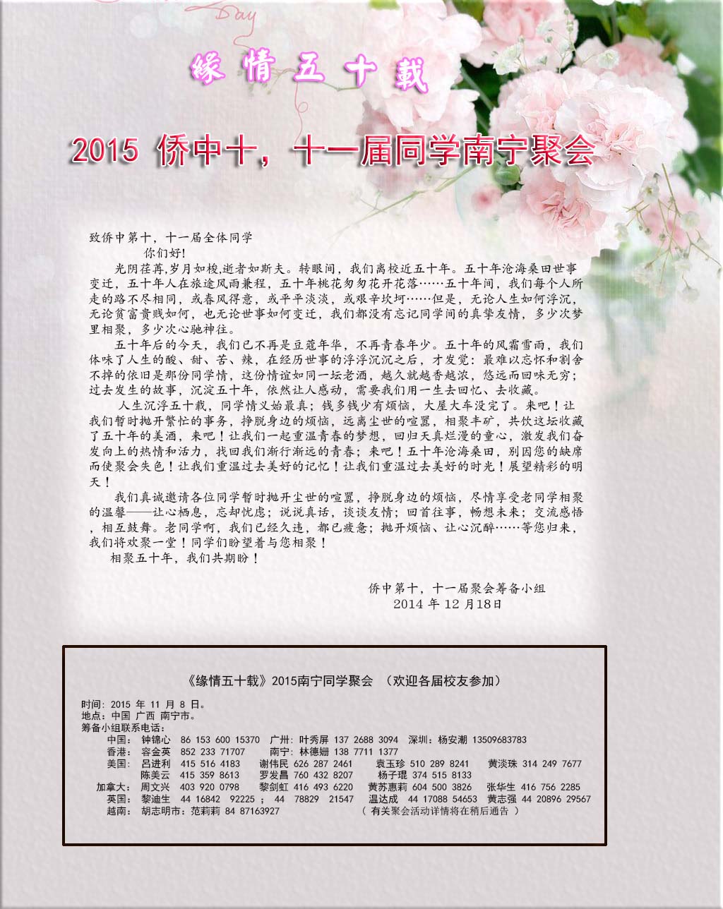 缘情五十载聚会(侨中10,11届同学)