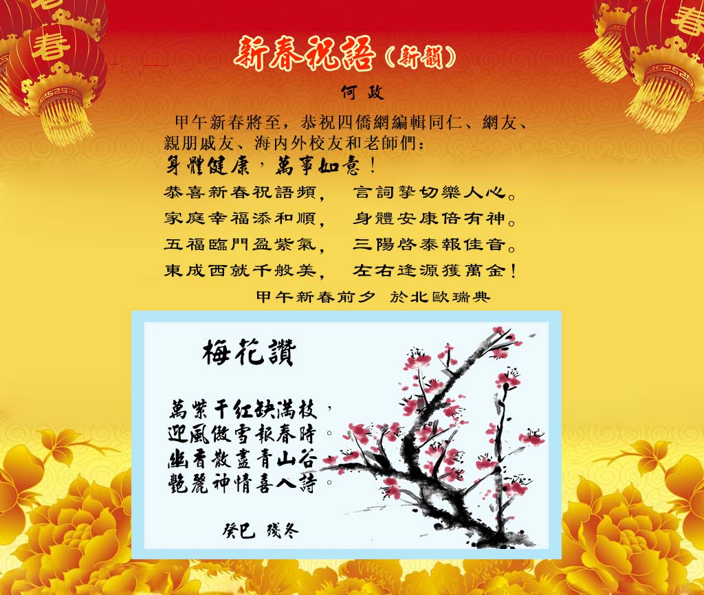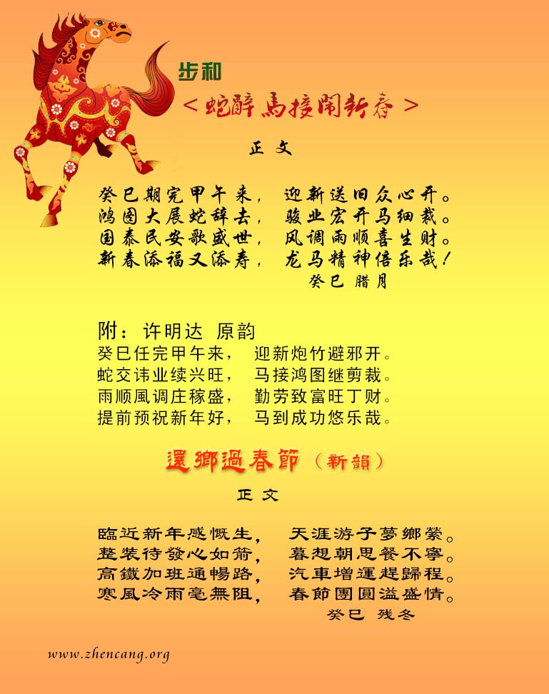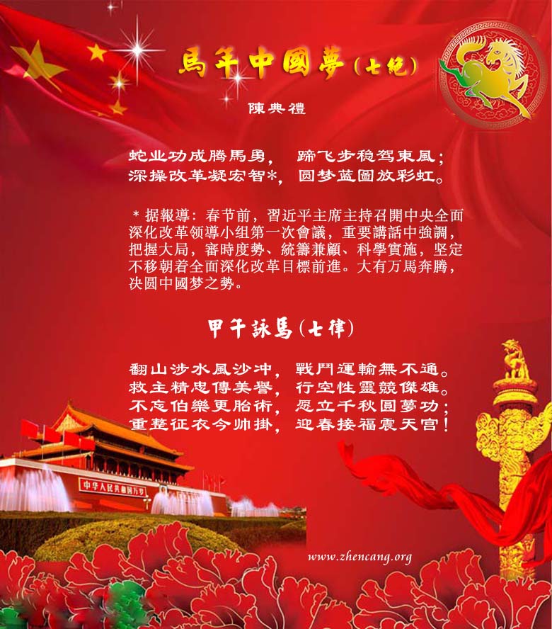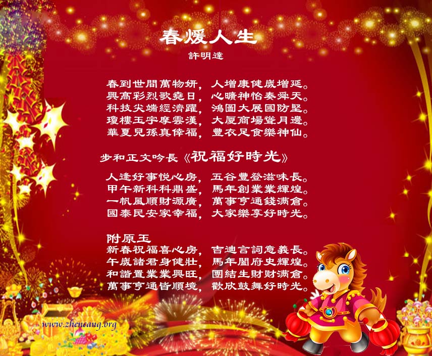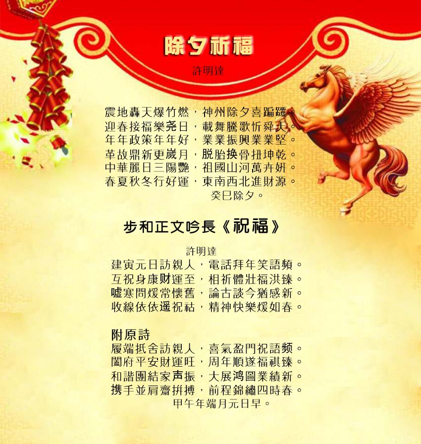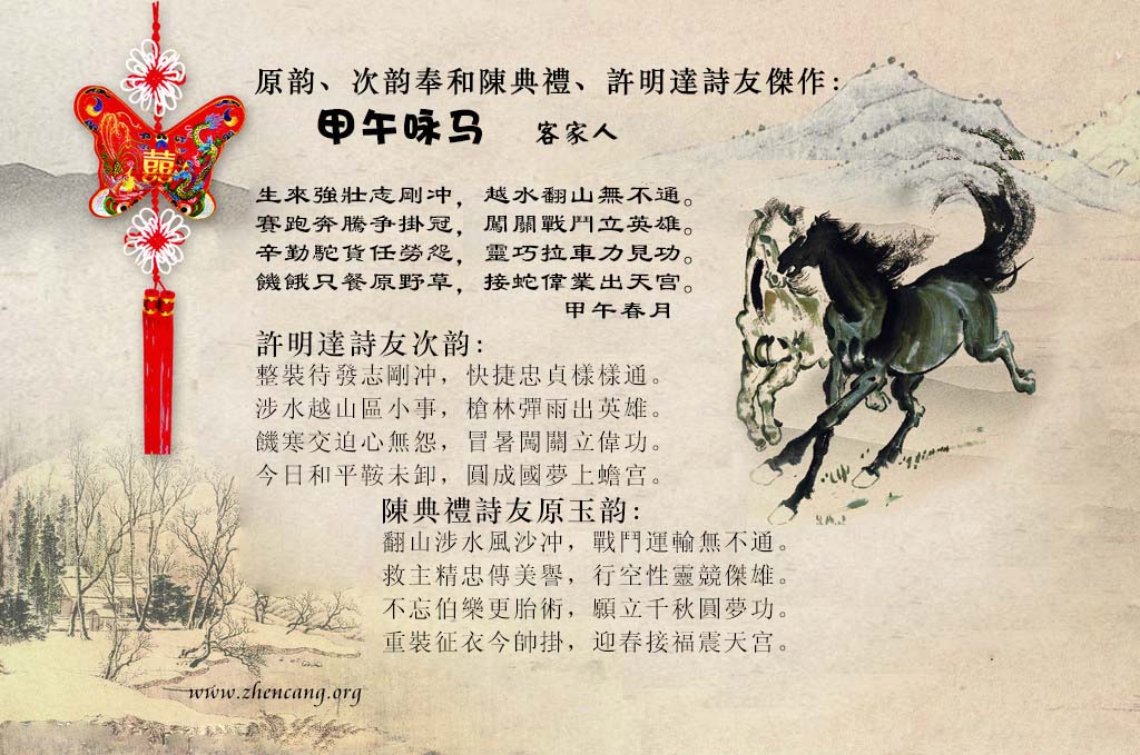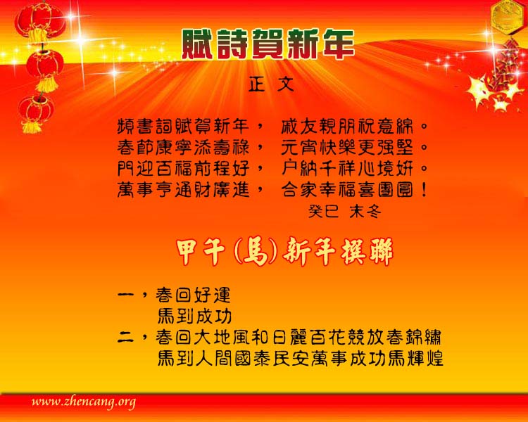 賦詩賀新年 甲午(馬)新年撰聨联
