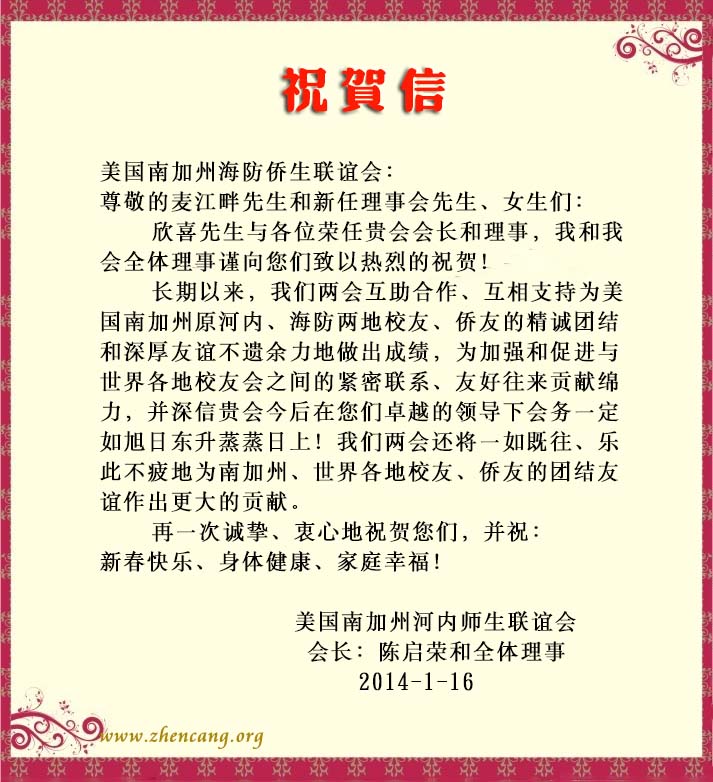 (美国南加州河内華僑师生聯誼會 1/14)