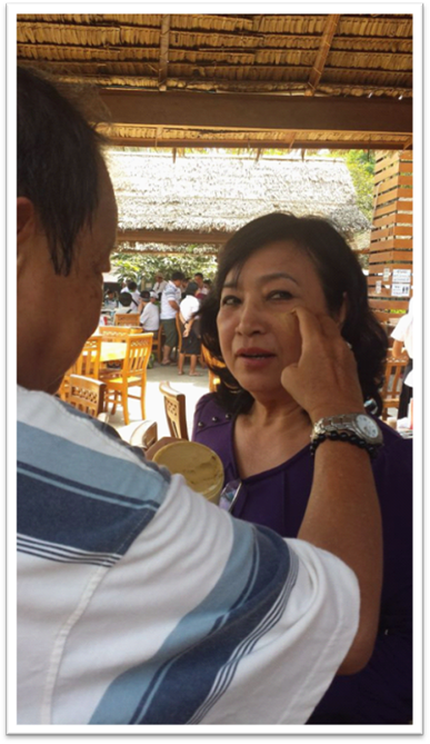 我學緬甸人往妻子臉上涂黃香楝,表示親愛,結果把她變成“黃臉婆”(下圖,曉東攝)